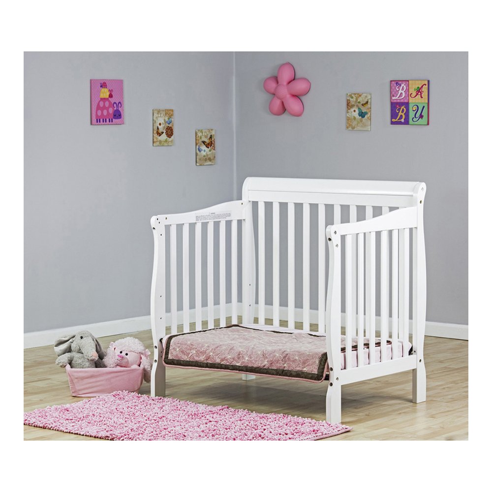 The Dream On Me Aden Convertible 3 in 1 Mini crib is a beautifully designed crib that gracefully matures with your child from infancy, through childhood to adulthood. With its robust good looks and solid frame this crib features a stationary( non drop side) rail design which provides the utmost in product safety. For ease in reaching your baby, it sits low to the floor and features the convenience of a 3 position, adjustable mattress support system. stylish and sturdy, this lovely piece of nursery furniture grows with your child transitioning easily into a toddler daybed, and twin size bed(twin size bed frame and twin mattress not included). Available in a variety of stylish lead free, non toxic finishes. Coordinates with the Dream on Me Marcus Changing Table and Dresser.