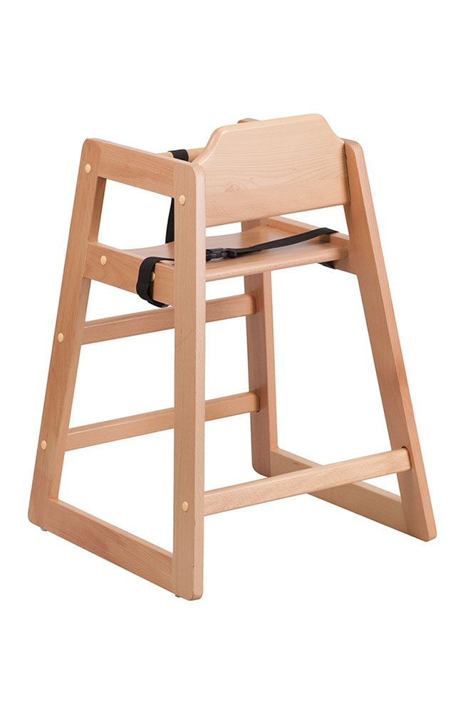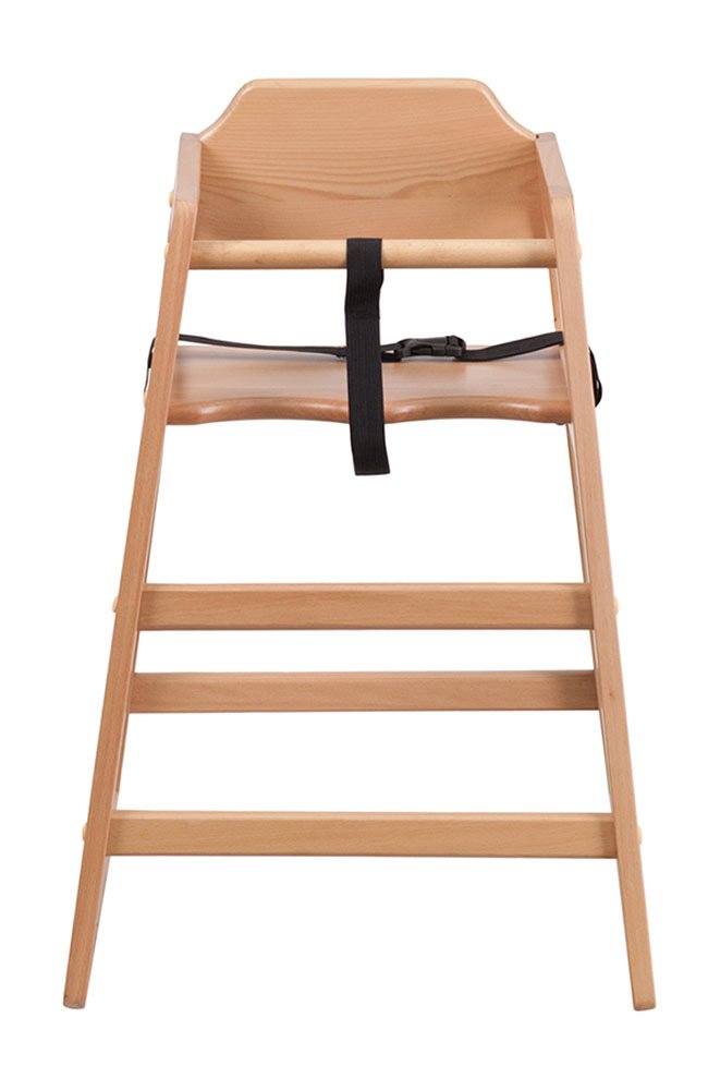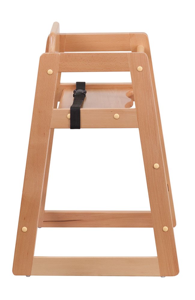 • Wood High Chair. Stacks up to 9 Chairs High. Adjustable Safety Harness Strap
