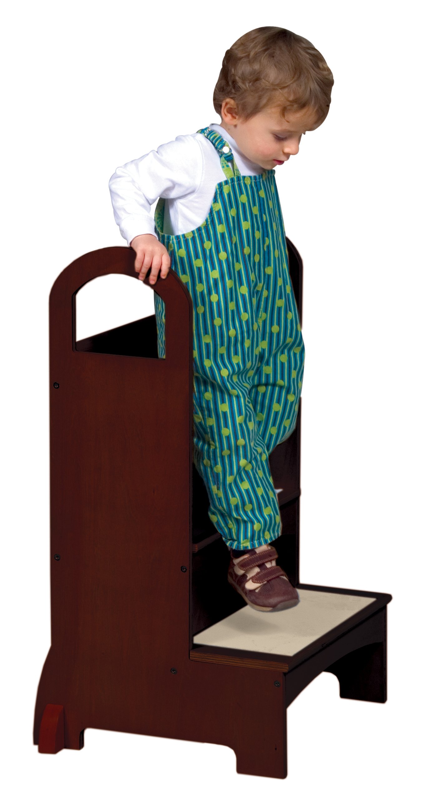 Constructed of birch plywood, this sturdy step stool is designed for the rigors of pre-school and daycare use. Features hand holds to assist in climbing up and down, side panels and textured, non-slip stair treads.