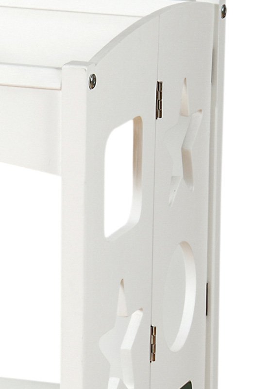Lightweight, easy to move, fold and store; our Kitchen Helper safely and securely elevates children to countertop height. Easily adjusts tothree platform heights. Features fun cutouts, wipe-off marker board and chalkboard. Ships fully assembled. Safely supports up to 125 lbs. Ages 3+fold flat for storage, lightweight, easy to move, 3 platform height