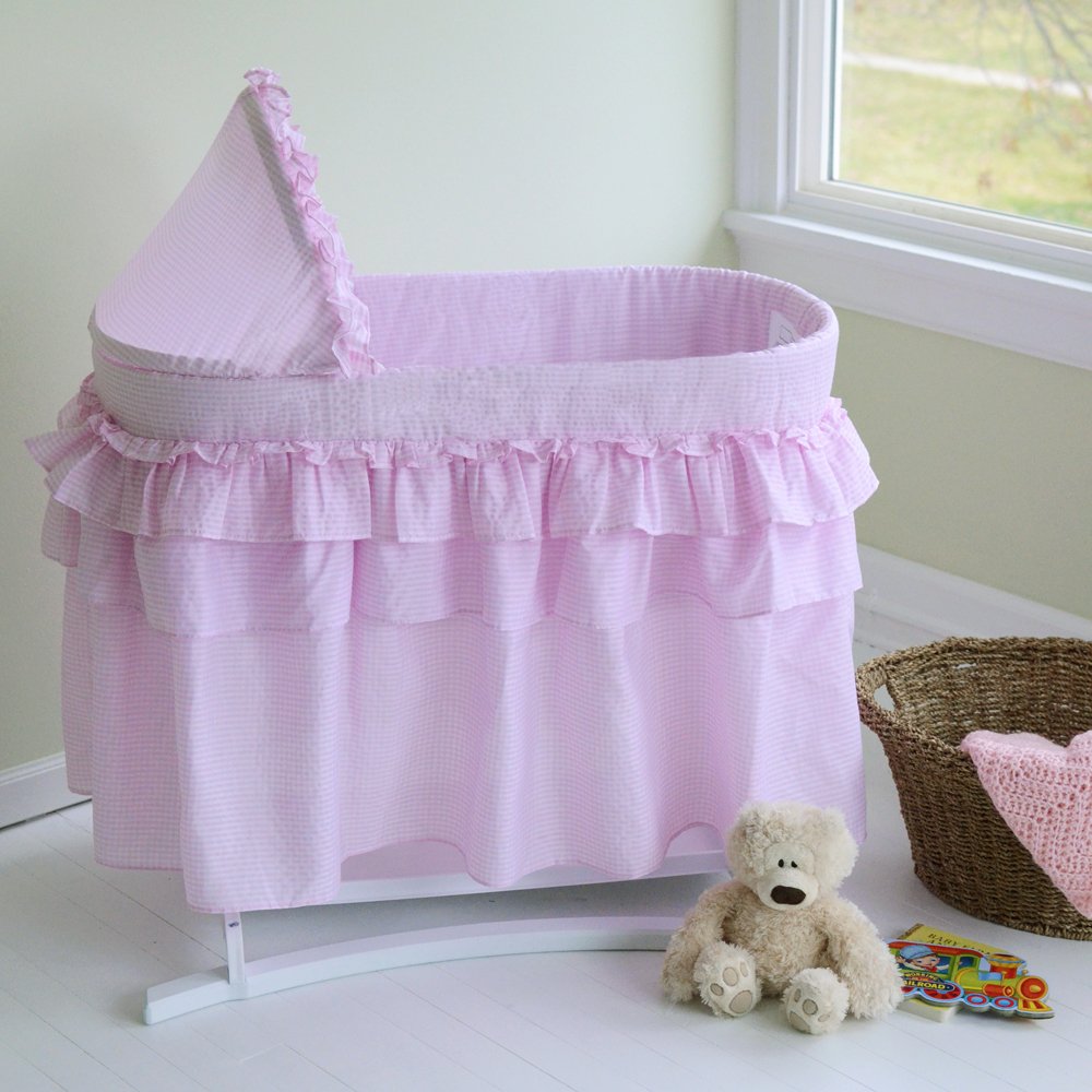 Lamont Home Newborn Good Night Baby Bassinet with Full Pink Gingham Skirt Lamont Home Newborn Good Night Baby Bassinet with Full Pink Gingham Skirt