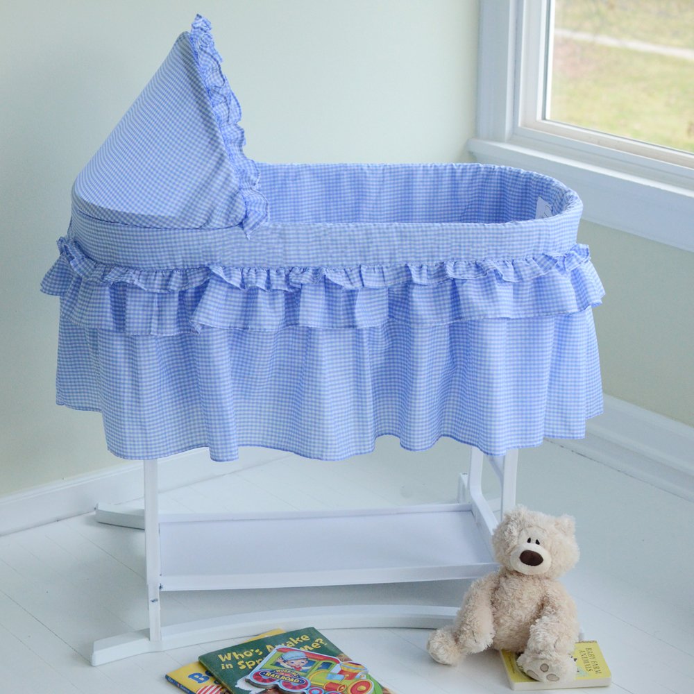 Lamont Home Newborn Good Night Baby Bassinet with Half Blue Gingham Skirt Lamont Home Newborn Good Night Baby Bassinet with Half Blue Gingham Skirt